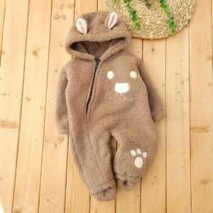 کاپشن سرهمی جوراب دار قهوه ای خرس و ماهی گلیران (بدو تولد تا 3 ماه)