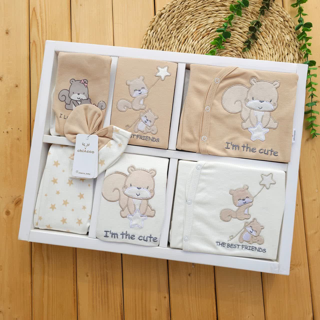 ست لباس 19تکه بیمارستانی پنبه خالص سرهمی دار سنجاب کرم چیاکو(0نفر)