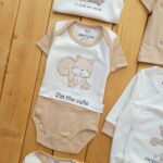 ست لباس 19تکه بیمارستانی پنبه خالص سرهمی دار سنجاب کرم چیاکو