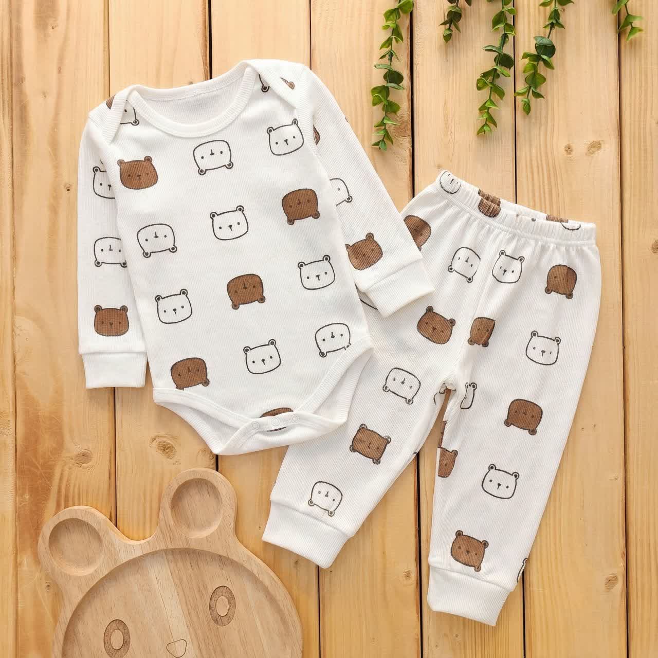بادی شلوار پنبه کبریتی خرس سفید