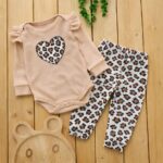 بادی شلوار پنبه کبریتی قلب کرم پلنگی
