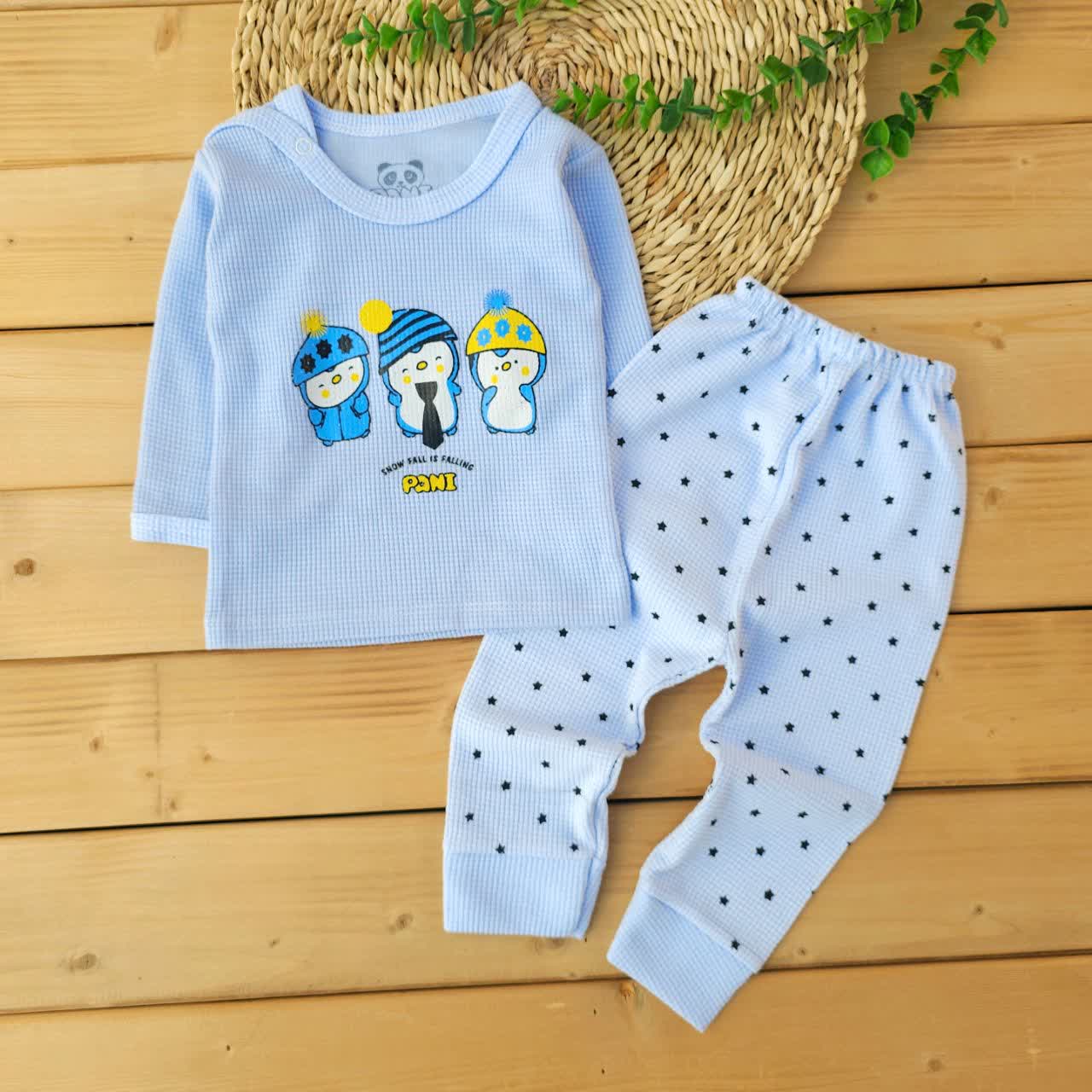 بلوز شلوار پنبه کبریتی پنگوئن ابی پانی