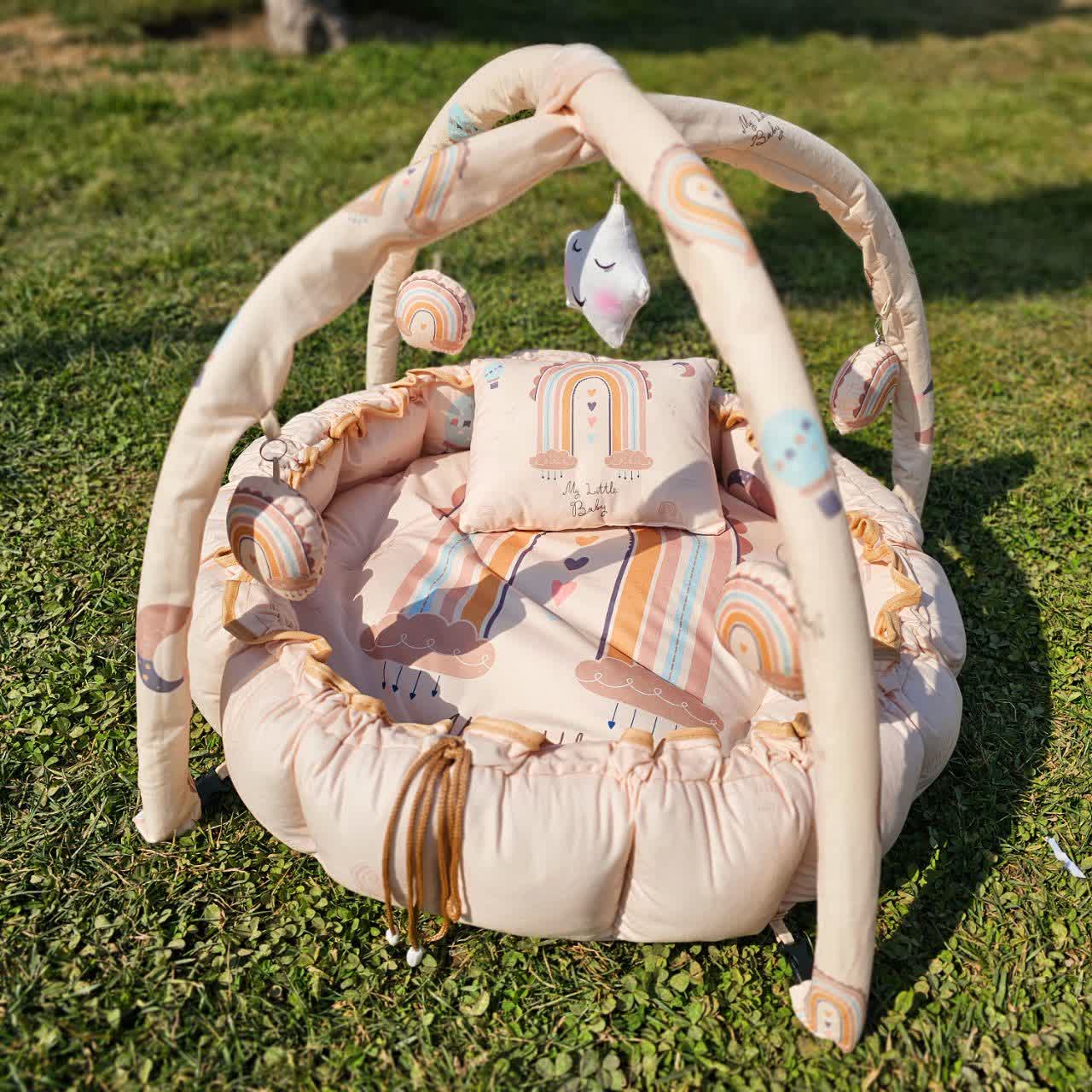 تشک بازی مخمل میکرو رنگین کمان کرمتشک بازی یکی از وسایلی هست که خیلی به مادرای خوشگلمون تو سرگرمی کوچولو ها کمک میکنه. جنس روی تشک بازی ها مخمله که بسیار لطیف و نرمه، بیرونش هم تترون کار شده که تو فصل گرما میتونی از طرف دیگه هم استفاده کنید .