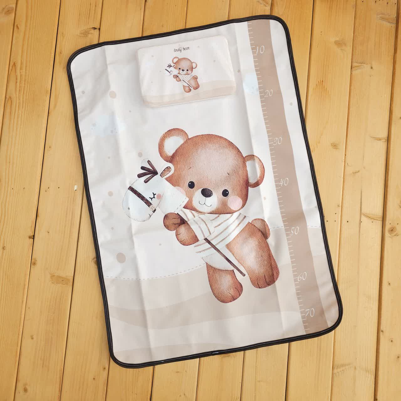 زیر انداز تعویض بالشت دار مخمل خرس و اسب چوبی کرم(0نفر)