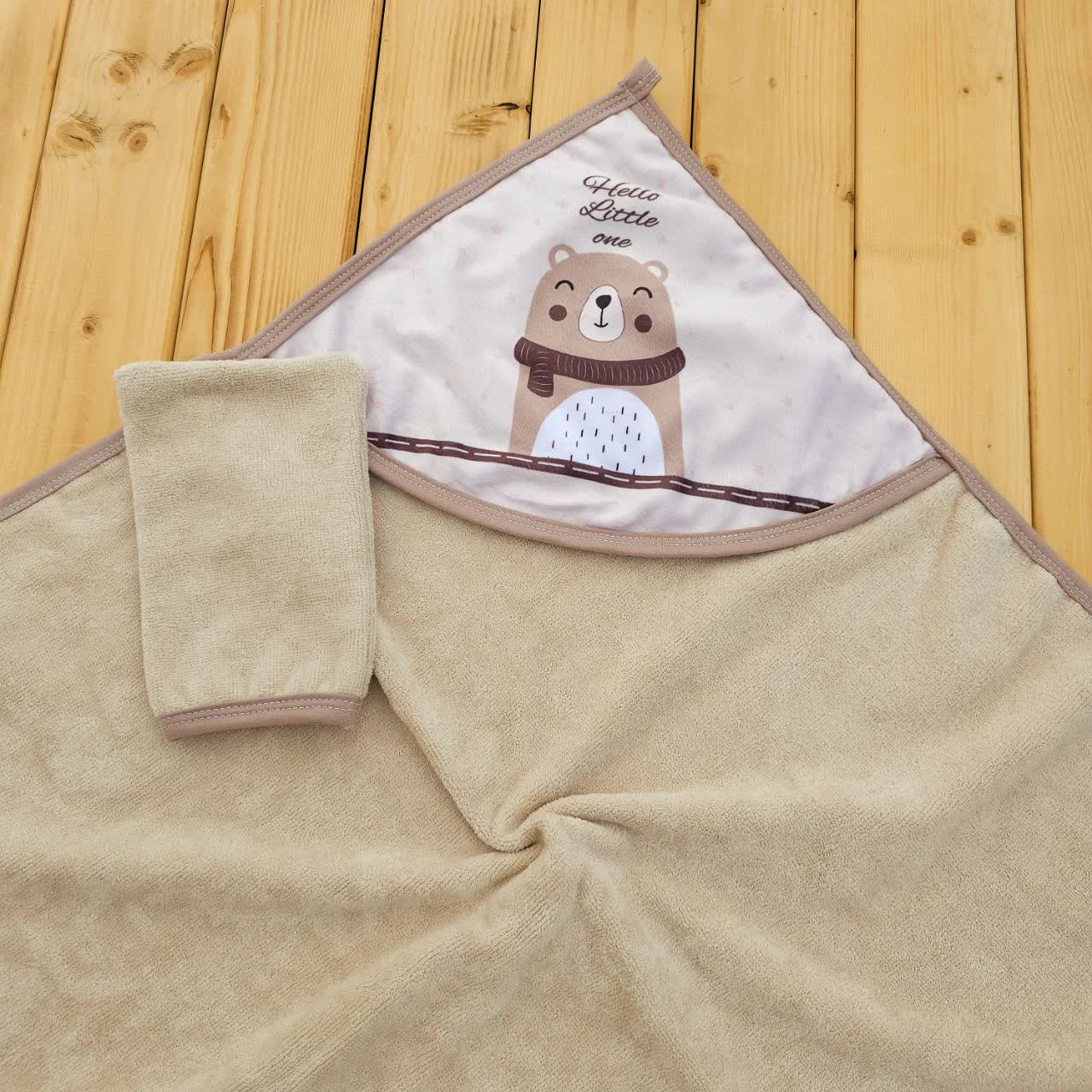 ست حوله و لیف سایز بزرگ پارچه تبریز خرس قطبی کرم