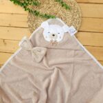ست حوله و لیف سایز بزرگ پارچه تبریز گلدوزی دار خرس کرم لاویمهم ترین ویژگی هایی که حوله نوزاد دارد ودرهنگام خرید باید به ان دقت کنید شامل:
