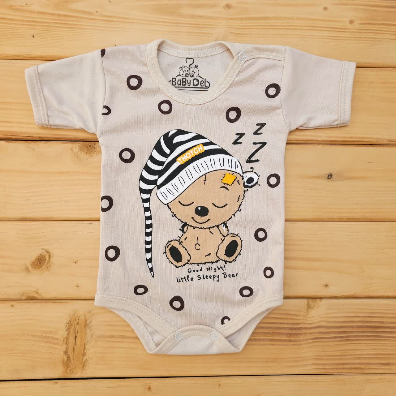 ست لباس سرویس باز خرس خوابالو کرم داندلیون بادی استین کوتاه