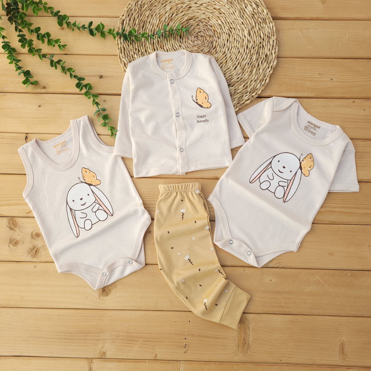 ست لباس سرویس باز خرگوش کرم نی نی گل