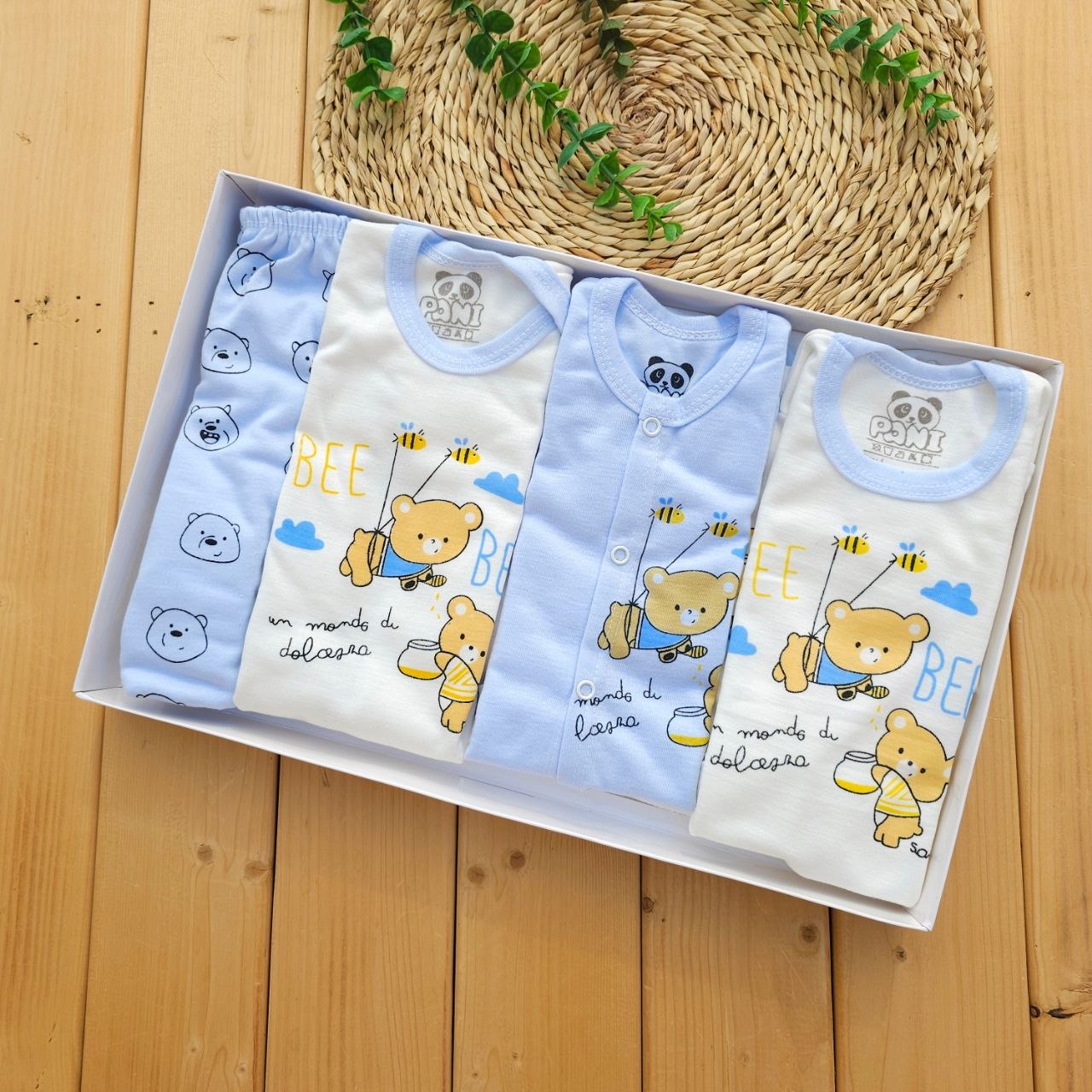 ست لباس 19تکه بیمارستانی اقتصادی خرس و زنبور عسل آبی پانی