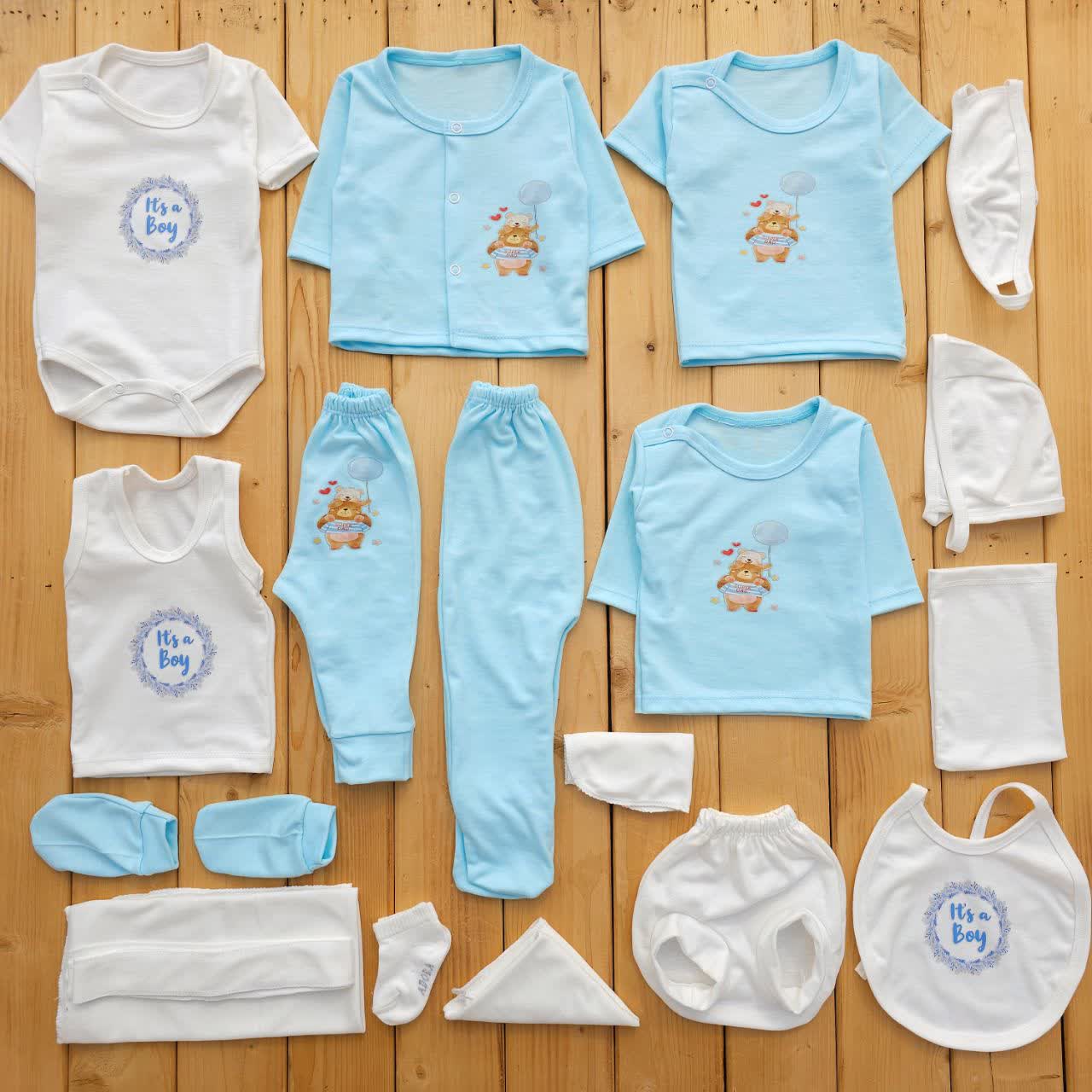 ست لباس 19تکه بیمارستانی پنبه ای آبی It’s a Boy ادورا