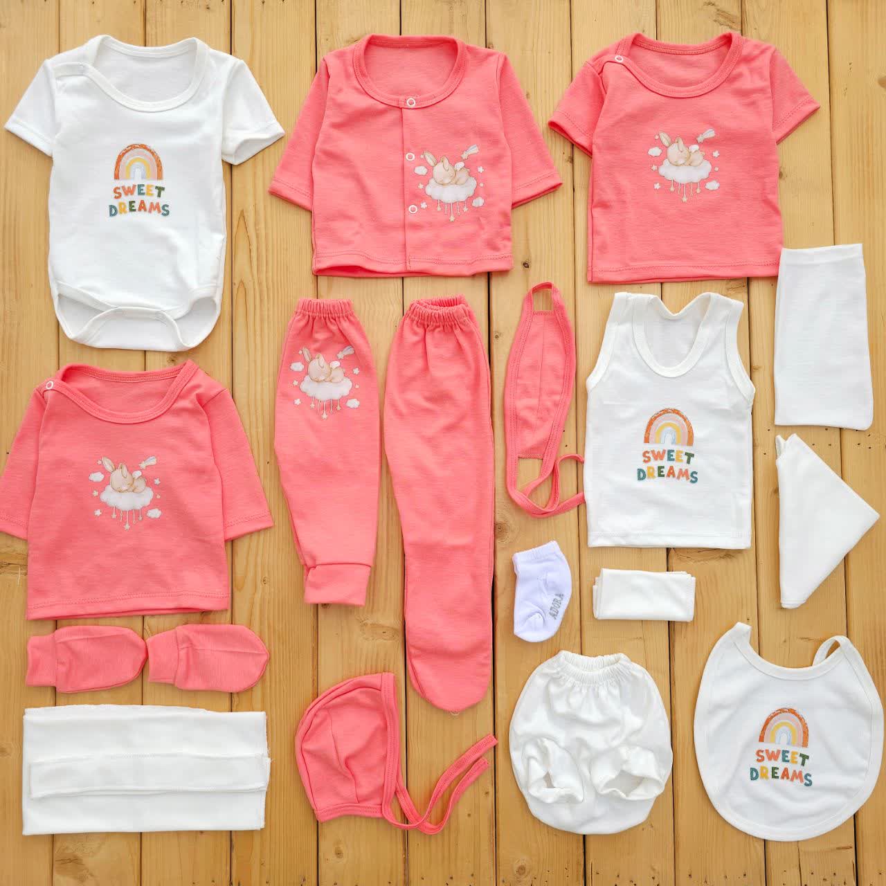 ست لباس 19تکه بیمارستانی پنبه ای رنگین کمان گلبهی آدورا