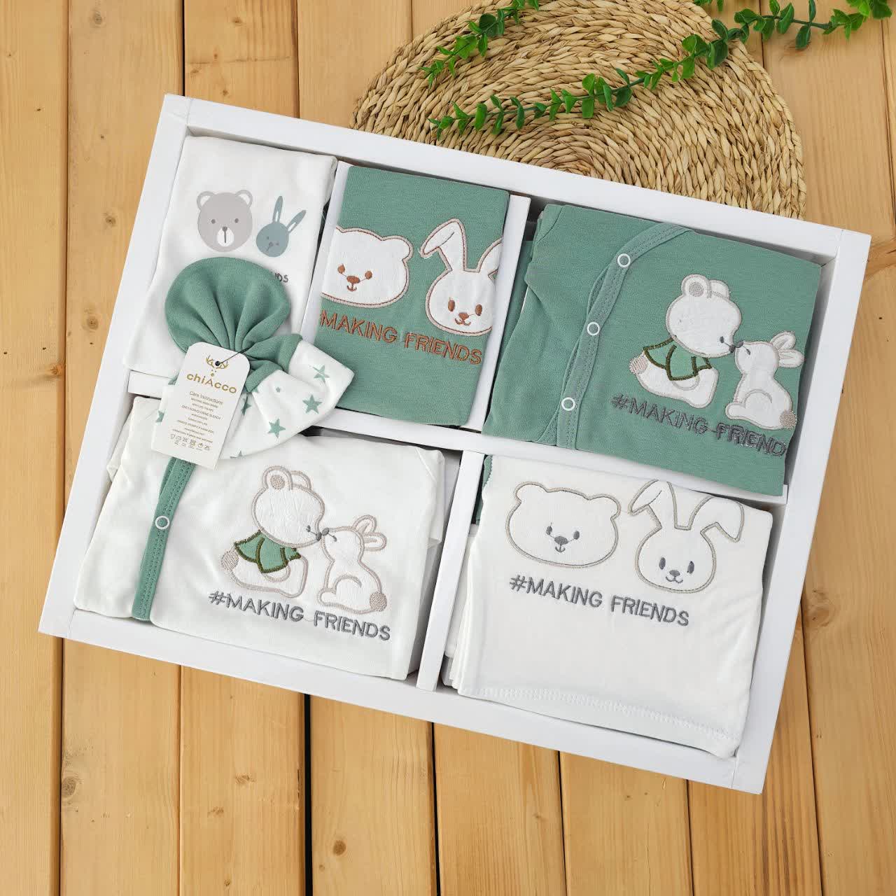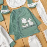 ست لباس 19تکه بیمارستانی پنبه خالص سرهمی دار خرس و خرگوش سبز چیاکو| مشخصات دیگر |