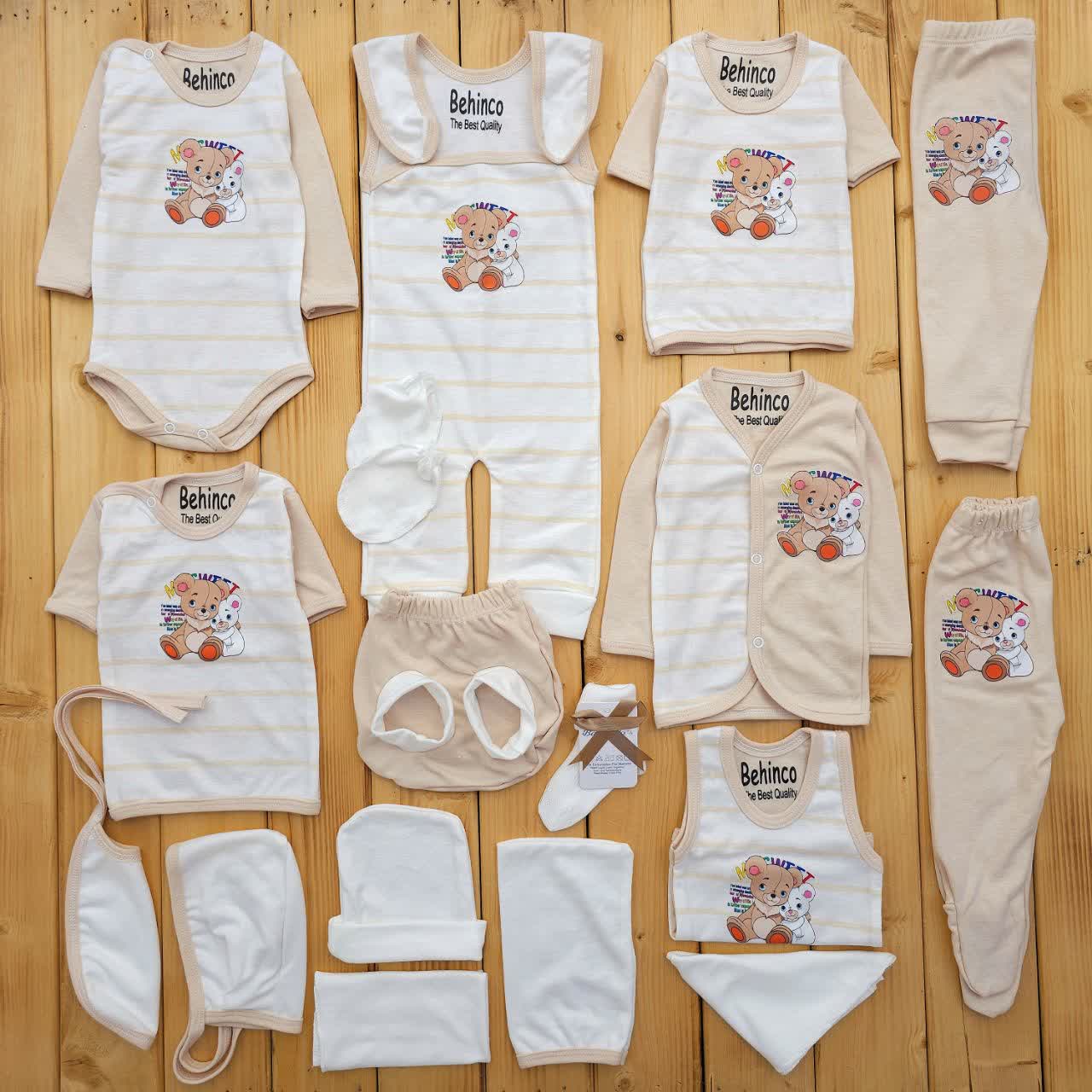 ست لباس 19 تکه بیمارستانی پنبه خالص سرهمی دار کرم بهین(0نفر)