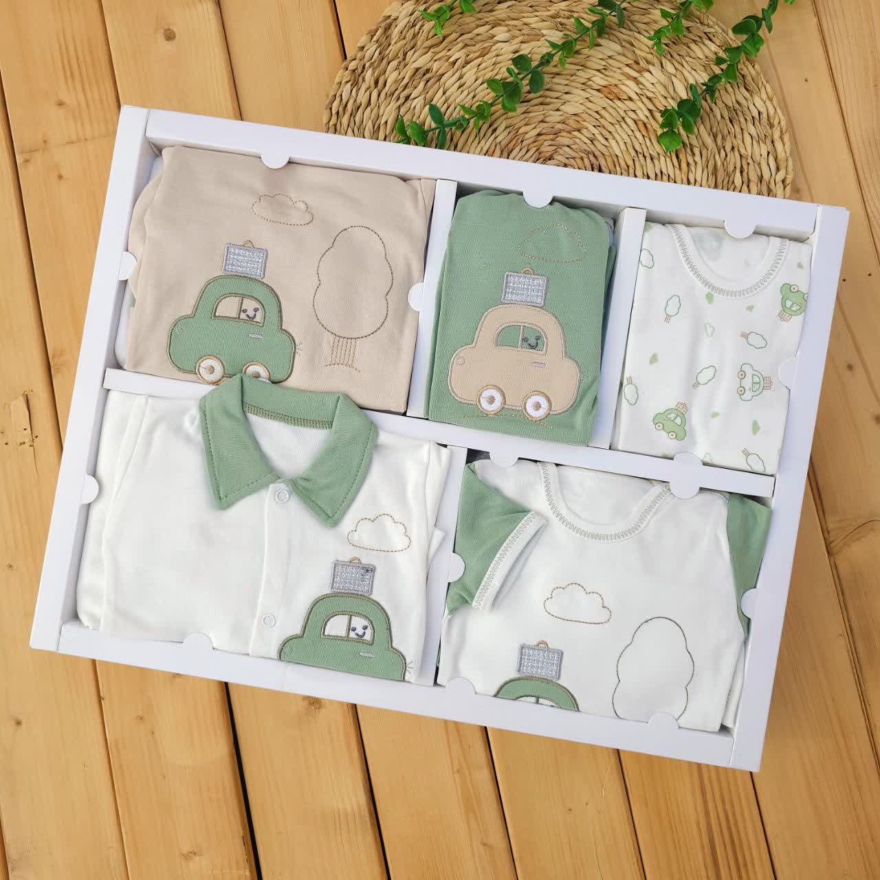 ست لباس 19تکه بیمارستانی پنبه خالص ماشین سبز BabySet