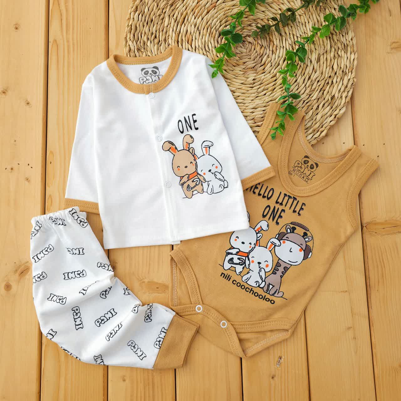 ست لباس 3 تکه دو خرگوش شکلاتی سفید پانی