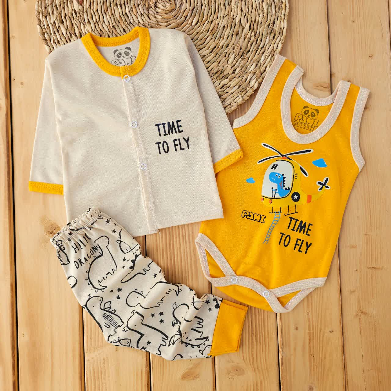ست لباس 3 تکه هلیکوپتر نارنجی کرم پانی