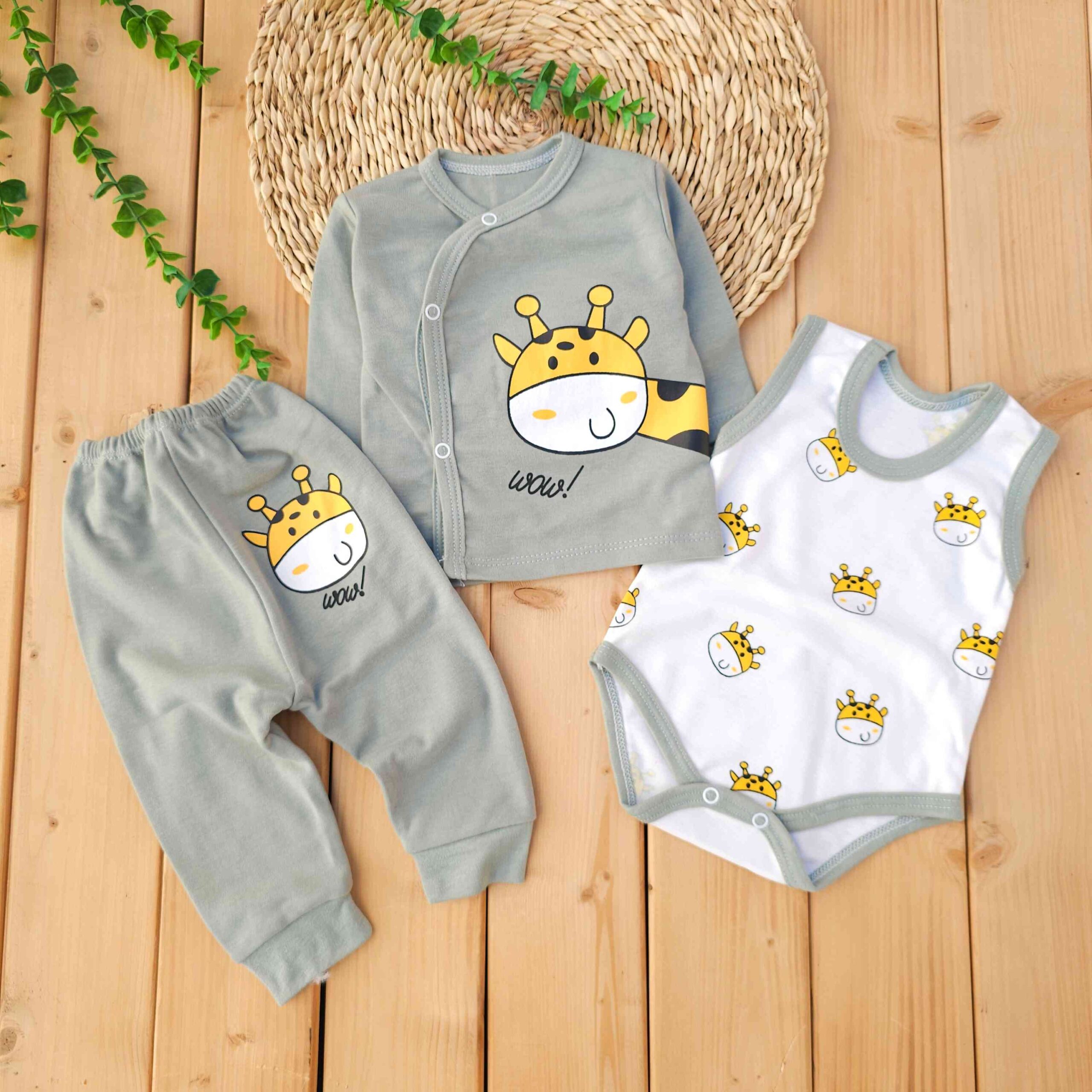 ست لباس 3 تکه پنبه ای سبز زرافه لیونا