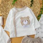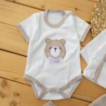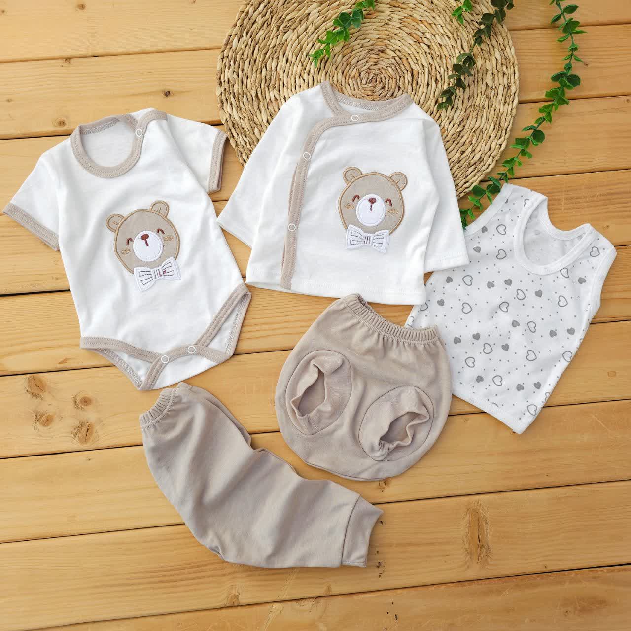 ست لباس 5تکه پنبه خرس و پاپیون کرم لیونا
