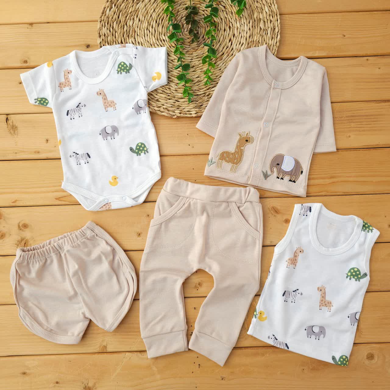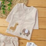 ست لباس 5 تکه پنبه خالص فیل و زرافه کرم آنجلا
