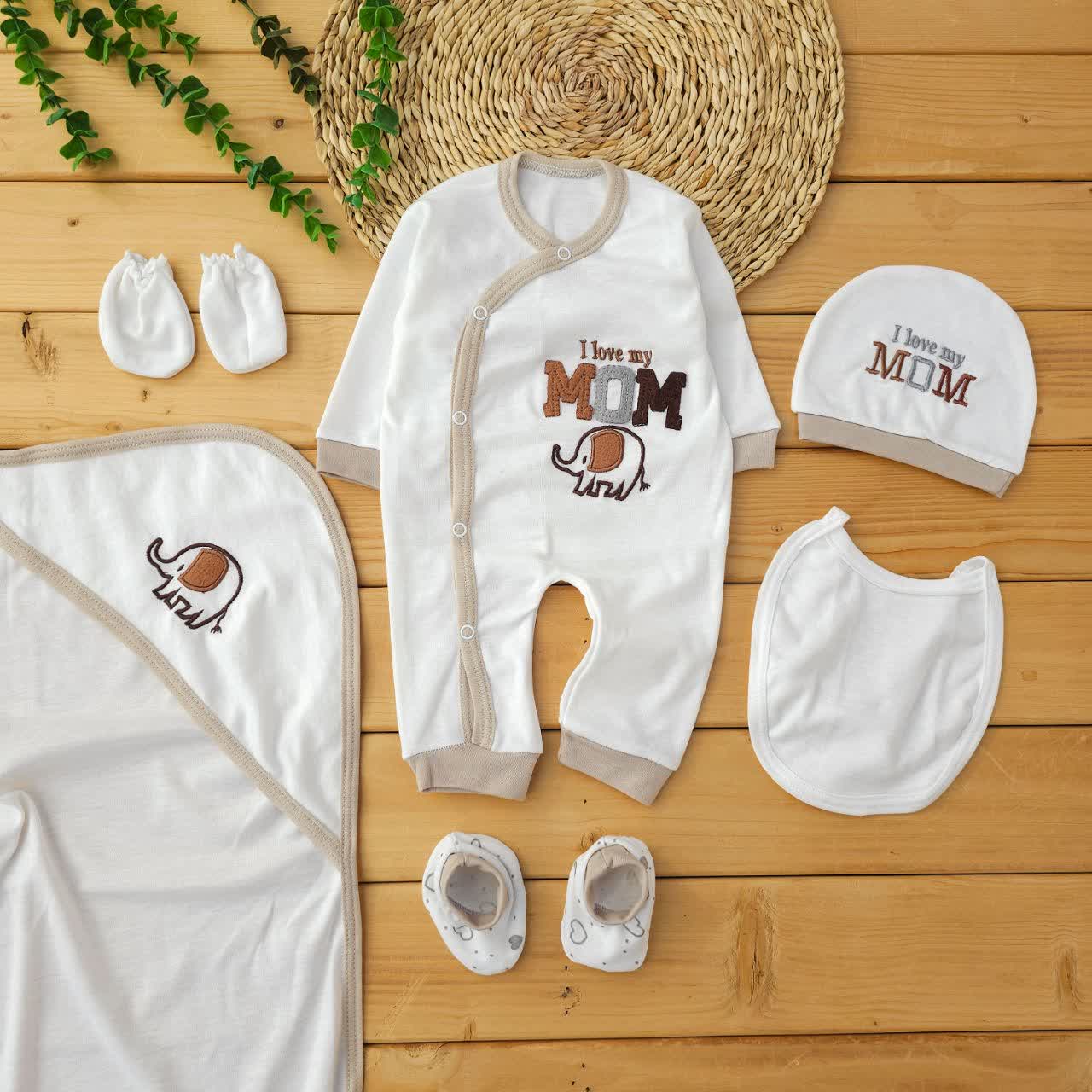 ست 7تکه بیمارستانی فیل MOM سفید کرم لیوناست های 7تکه بیمارستانی دارای پارچه نرم ولطیف بدون حساسیت مناسب برای زمان به دنبا امدن نوزاد