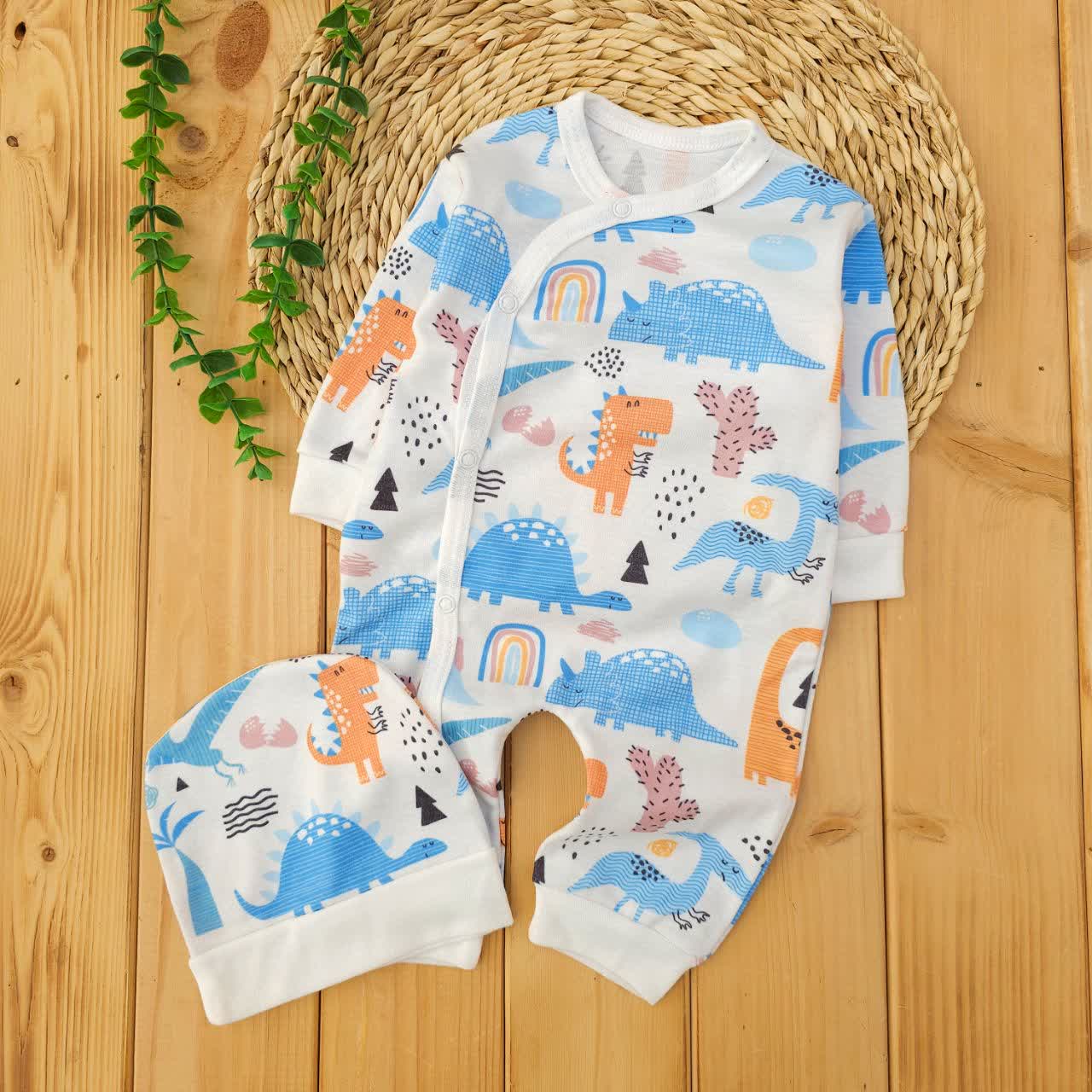 سرهمی کلاه دار پنبه ای دایناسور آبی لیونا