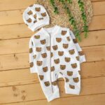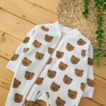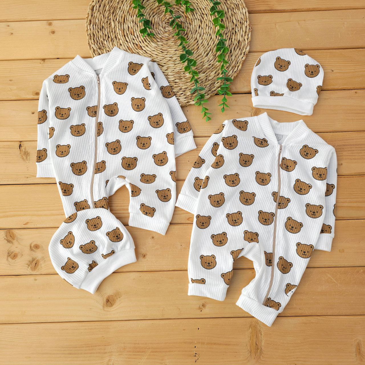 سرهمی کلاه دار کبریتی زیپی خرس ریز زمینه سفید نی نی روز