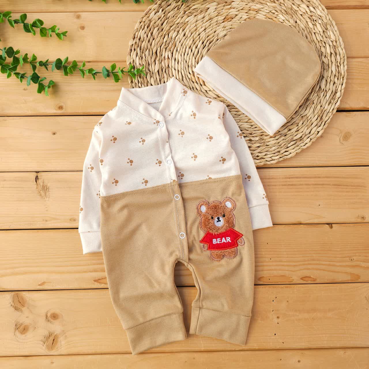 سرهمی کلاه دار گلدوزی Bear کرم نی نی روز