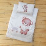 سرویس خواب کنار مادر 6 تکه میکرو خرس اسب چوبی کرم (همراه با آغوشی شیردهی)