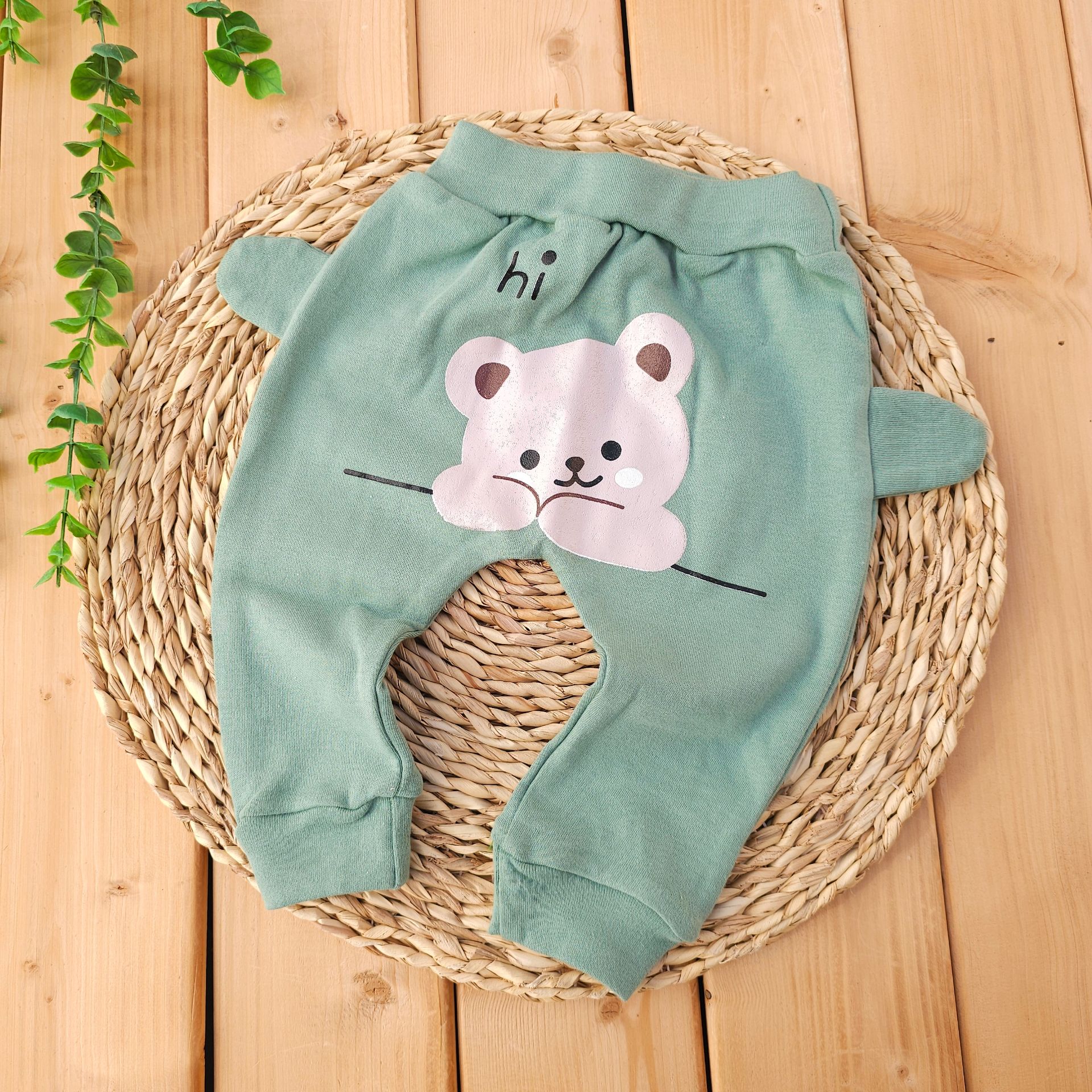 شلوار گوش دار پنبه خالص خرس سبز
