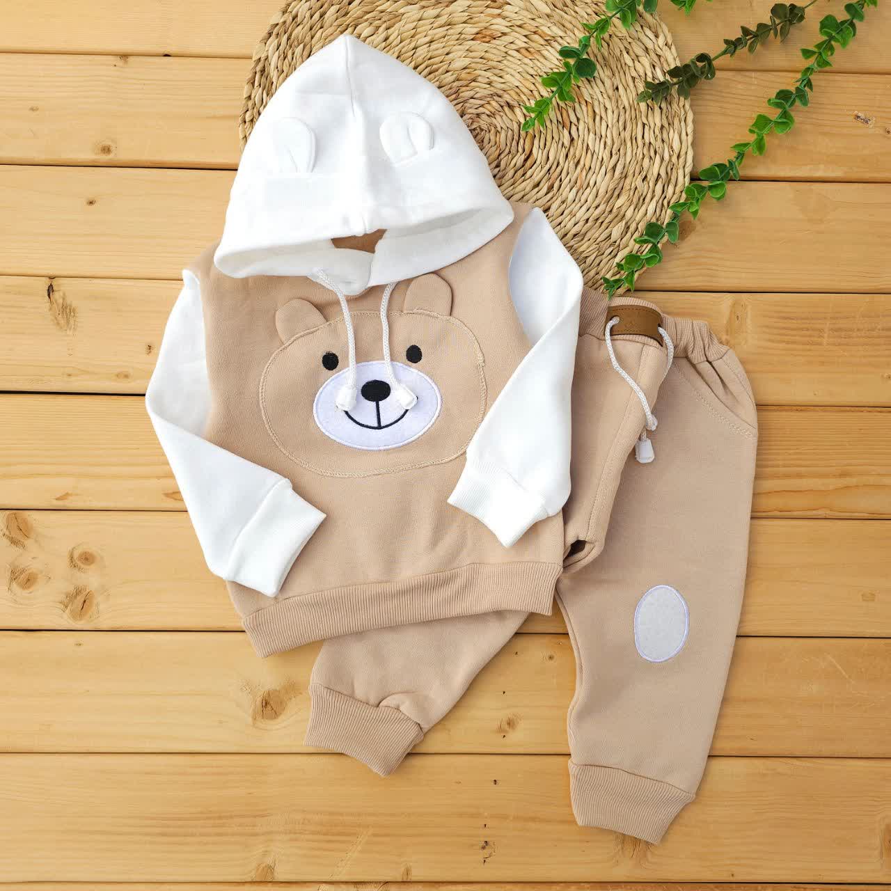 هودی و شلوار داخل کرک تدی گوش دار کرم نی نی روز