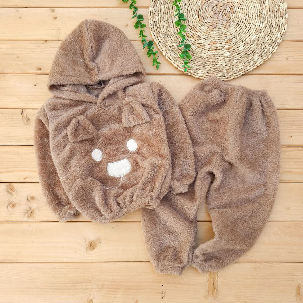 هودی و شلوار پشمالو تدی گوش دار شکلاتی NFC