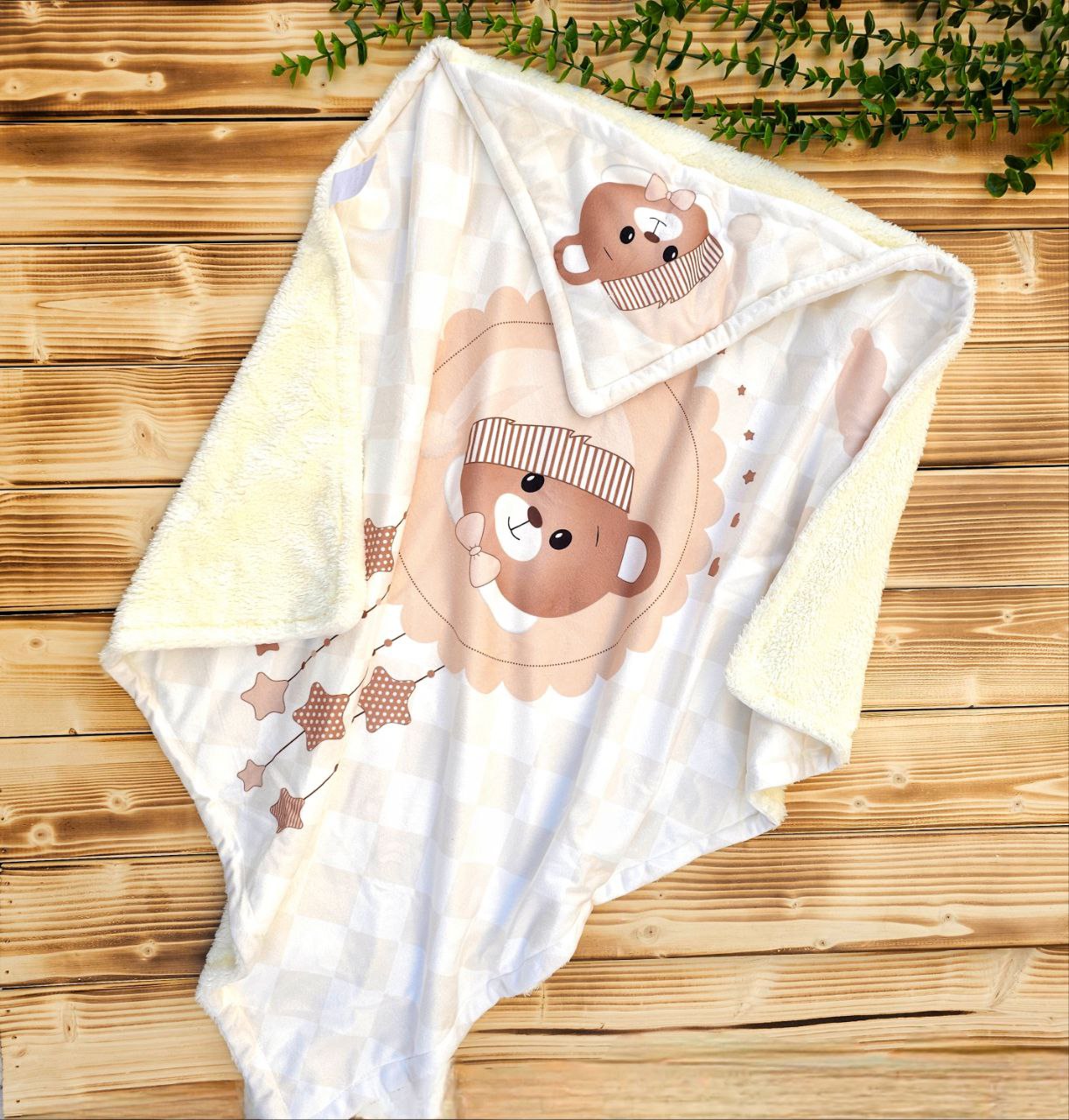 پتو کلاه دار مخمل داخل خز خرس شطرنجی کرم سفید برفیپتو کلاه دار از جمله اقلام پرکاربرد سیسمونی محسوب می شود که در ماه های ابتدایی تولد استفاده زیادی دارد، چون در 6 ماه اول تولد سیستم ایمنی کودک ضعیف هست و ممکن هست به سرعت بیمار شود، به همین دلیل گرم نگه داشتن کودک بخصوص در فصل های پاییز و زمستان بسیار با اهمیت می باشد.