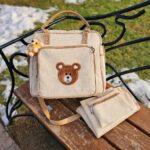 کیف 2 حالته 4 تکه تمام چرم گلدوزی دار تدی کرم ASO