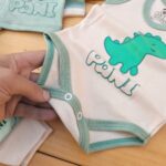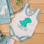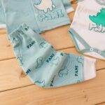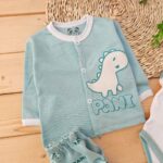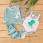 ست لباس 3 تکه دایناسور سبز کرم پانی