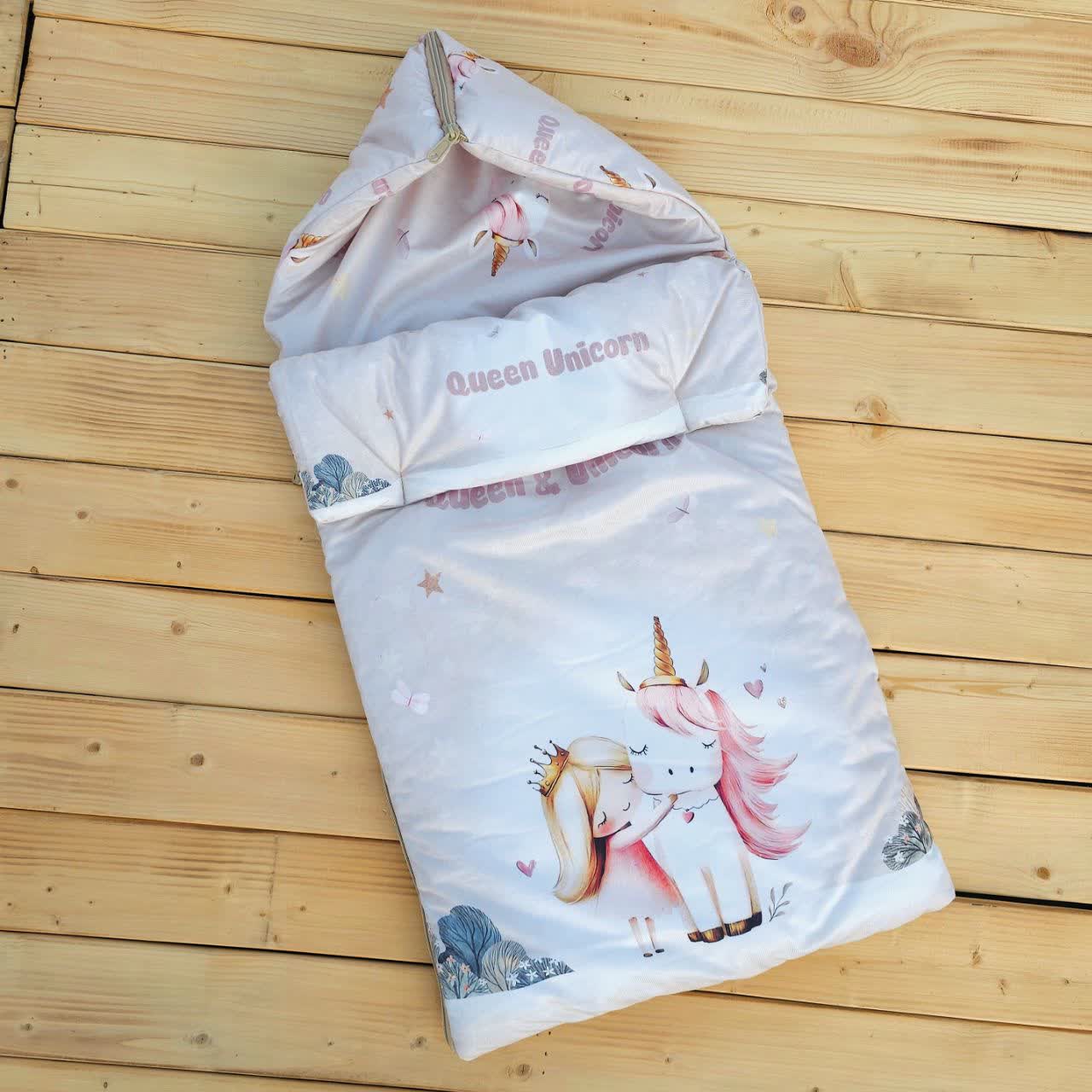 قنداق فرنگی 2کاره مخمل میکرو اسب تک شاخ کرم