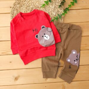 بلوز شلوار پنبه دورس خرس قرمز کرم یودا بی بی