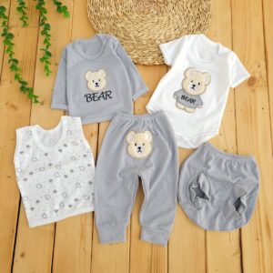 • ست لباس 19تکه بیمارستانی پنبه خالص سرهمی دار خرگوش و خرس طوسی چیاکو