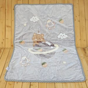 پتو گلبافت سایز بزرگ دولایه خرس و قطار طوسی