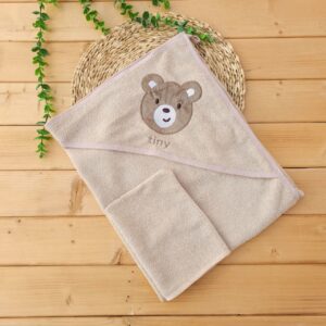 • ست حوله و لیف اقتصادی تدی Tiny کرم Qbaby
