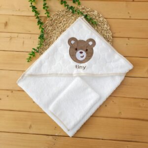 ست حوله و لیف اقتصادی تدی Tiny کرم Qbaby